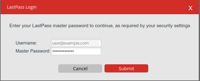 - This will take you to a page that then asks you to enter your LastPass master password for verification. Enter your LastPass master password.
